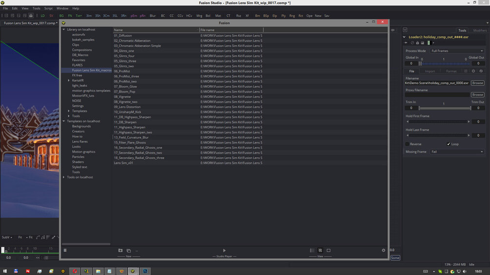 This is a Collection of Fusion Macros, faking a Lens Effects.